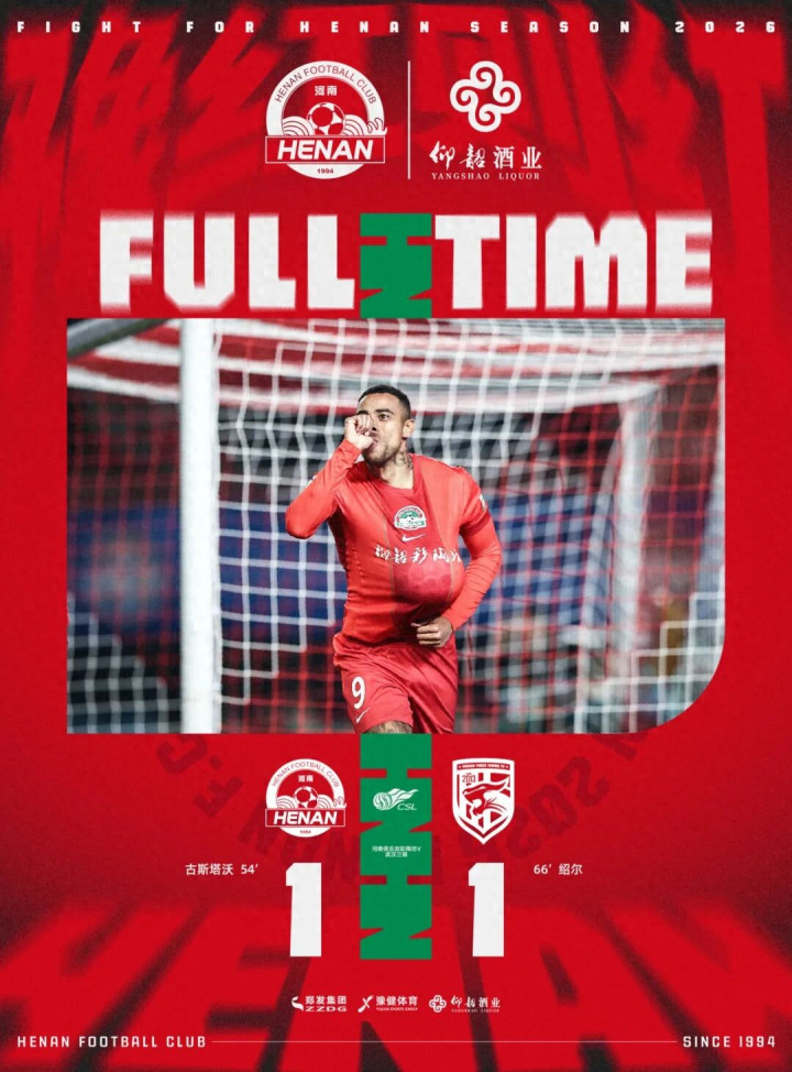 最终,河南俱乐部彩陶坊主场1-1战平武汉三镇。