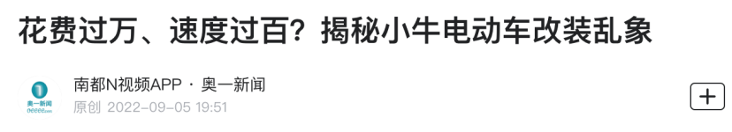早在2022年的315晚会上,央视便曾点名小牛电动自行车违法提速神色,此前据奥一新闻《耗尽过万、速渡过百?揭秘小牛电动车改装乱象》报谈,通过安装2000W功率电机、72V65ah电板和远驱360抑遏器的三件套,小牛UQi+的速率和续航最高甚而不错去到100km/h以上。
