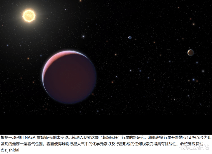这和土星最大卫星土卫六的碳氢化合物雾霾机制差未几,但规模诀别很大,土卫六的雾霾层大略有几百公里厚,而开普勒-51d的雾霾厚度齐快赶上通盘地球的半径了。
