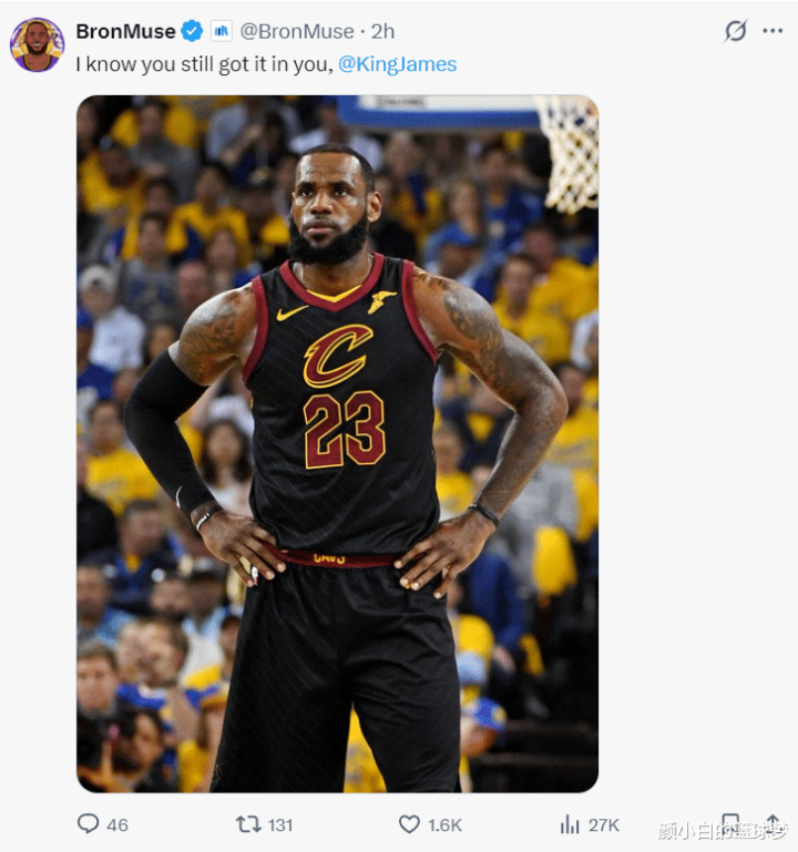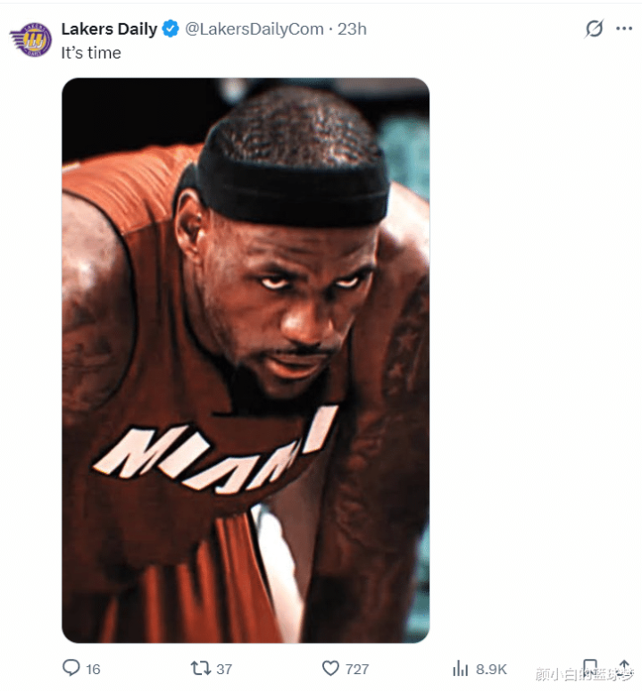 湖媒Lakers Daily晒出詹姆斯升天之瞳的经典一幕写谈:是期间了。