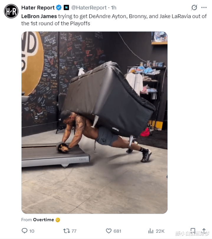 好意思媒HR:勒布朗将要带着艾顿、布朗尼、拉拉维亚这些球员一个东谈主打季后赛首轮。(下图便是詹姆斯在季后赛首轮的本质响应,一个东谈主扛下整个)
