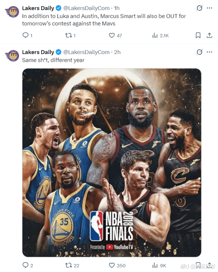 湖媒Lakers Daily又写谈:东契奇、里夫斯、斯玛特缺席对阵独行侠,詹姆斯的季后赛似乎又酿成了2018年单查对上天地勇!