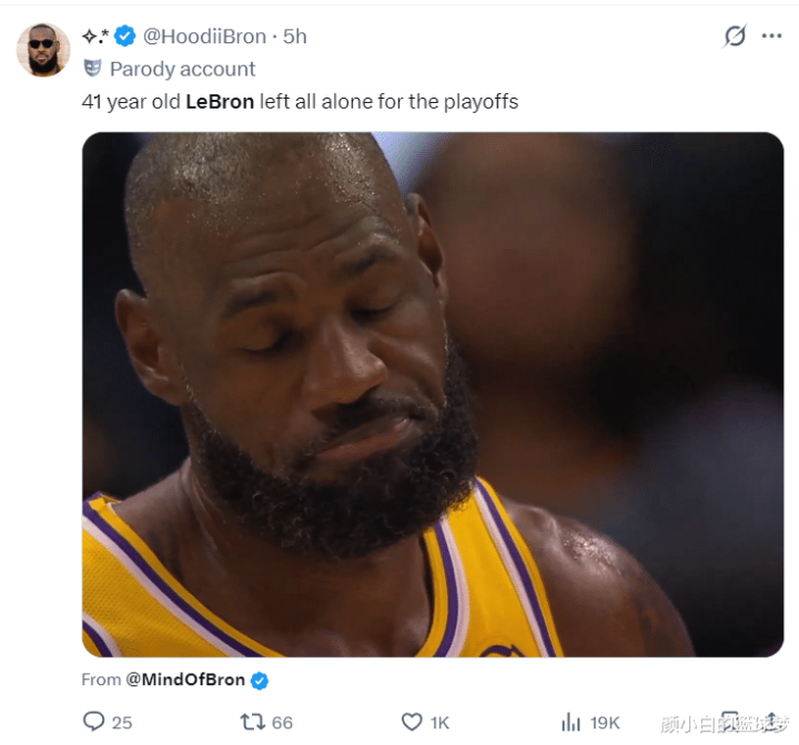 詹姆斯球迷:41岁的勒布朗要单核季后赛。(是詹姆斯摇头闭眼的一忽儿)