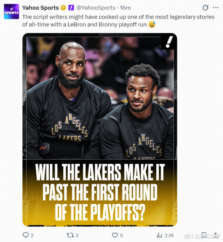 《雅虎体育》还辱弄:这些NBA的编剧们创作出了有史以来最外传的故事之一,湖东谈主季后赛包含了勒布朗与布朗尼的父子同台。