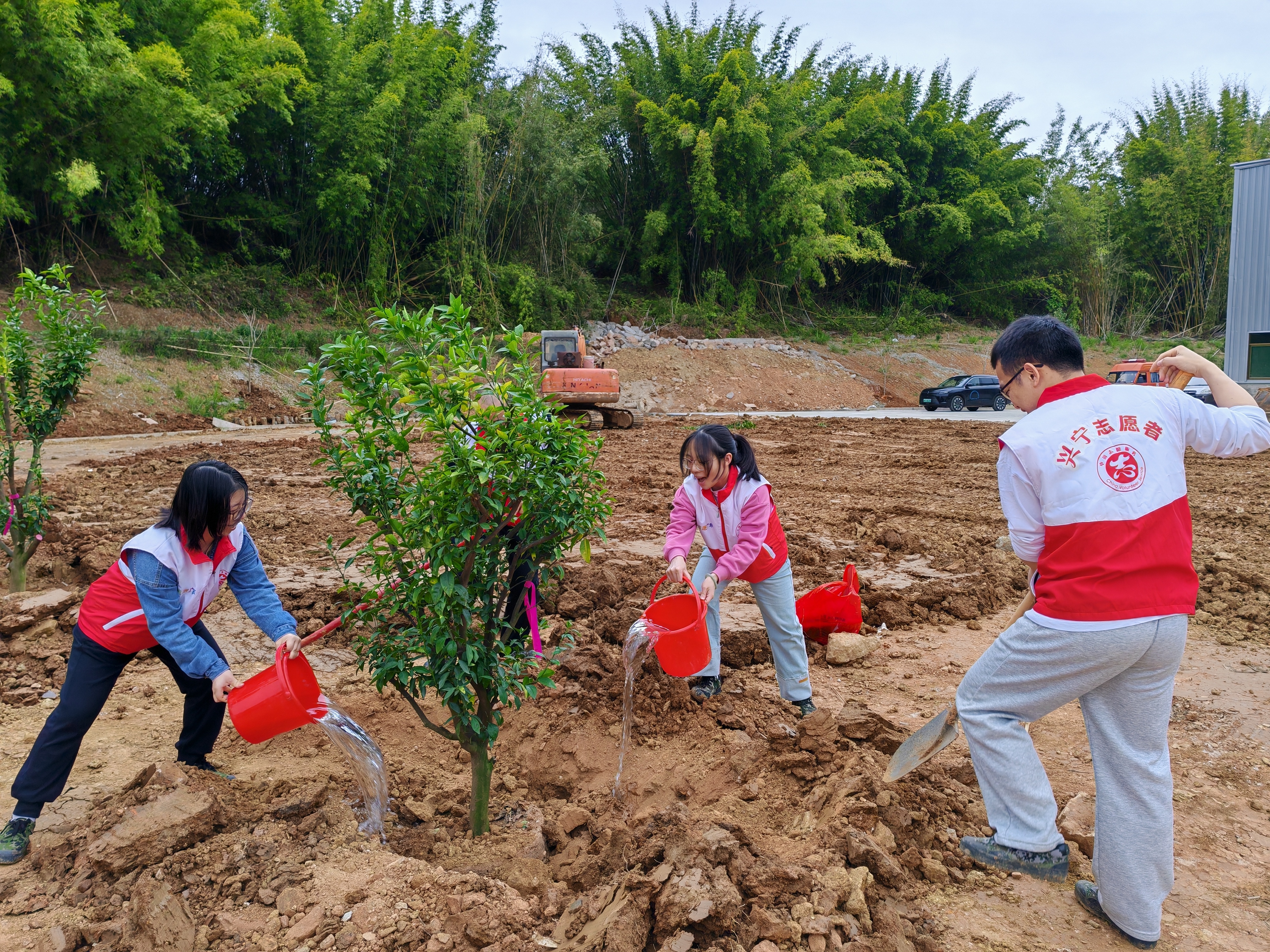 广东兴宁铁山渡田河保护区开展义务植树行为。