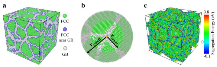 机器学习势场(MLIP)也为相关大规模体系的偏析提供了新用具。最新责任照旧开拓出可对大肆晶界(包括复杂高角度晶界)进行高精度模拟的机器学习势能模子,使得在较大措施上模拟含溶质原子的多晶结组成为可能。